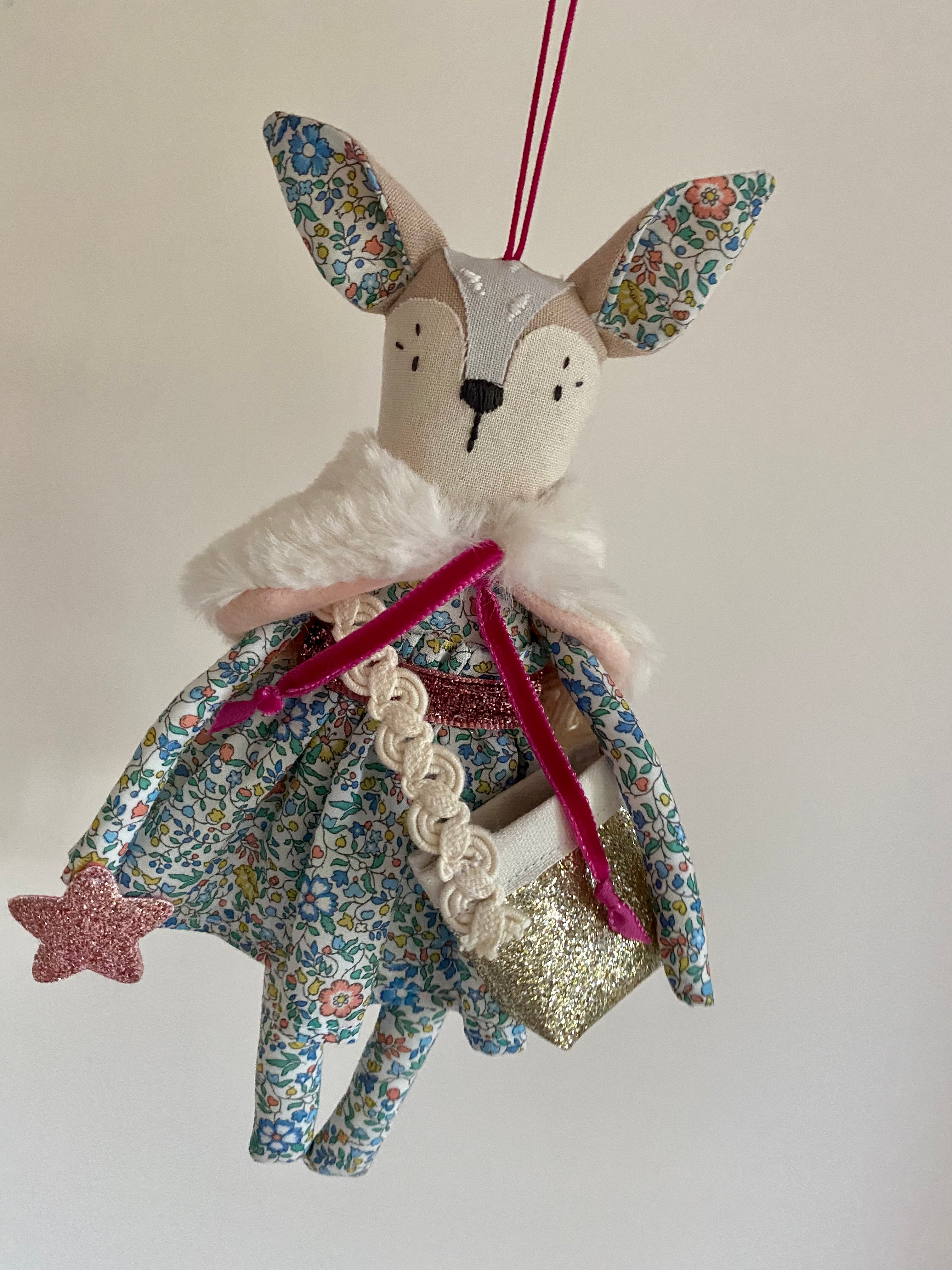 This Wish upon a Star TillyBob decoration is a perfect festive addition and I’m thrilled to be back making again! Following the hugely popular Angel decoration, these beautiful  friends each bring their own little star to wish upon as well as a bag to keep the wish safe. Each decoration measures approx 20cm tall (excluding the ears!), is complete with a set of handmade accessories. Each one is unique, completely handmade by myself, and wears a Liberty Print skirt, cape and bag and holds their magic star.