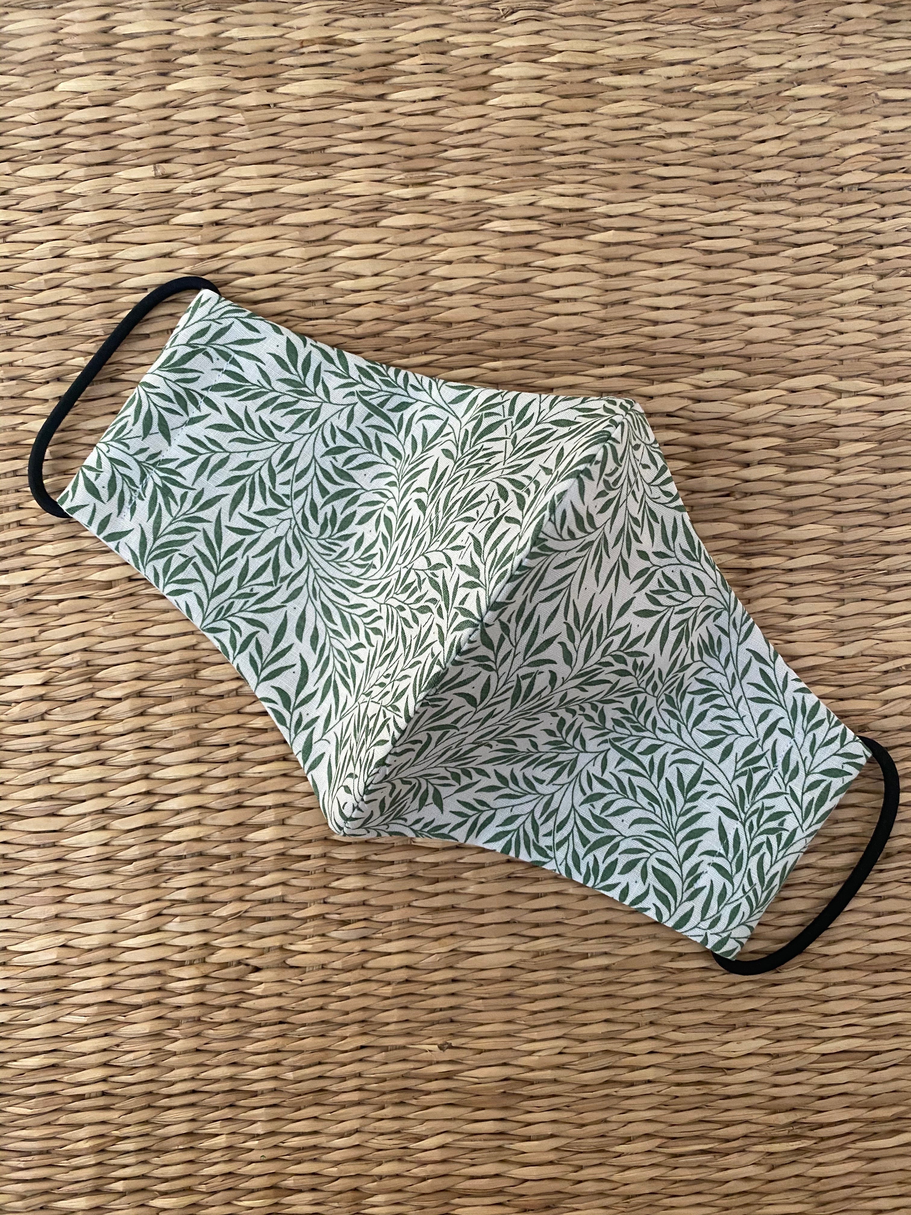 Re-usable Cotton Face Mask - Adult Size made with Liberty of London Willow Wood Print as the outer fabric, this material is a cotton/linen mix.